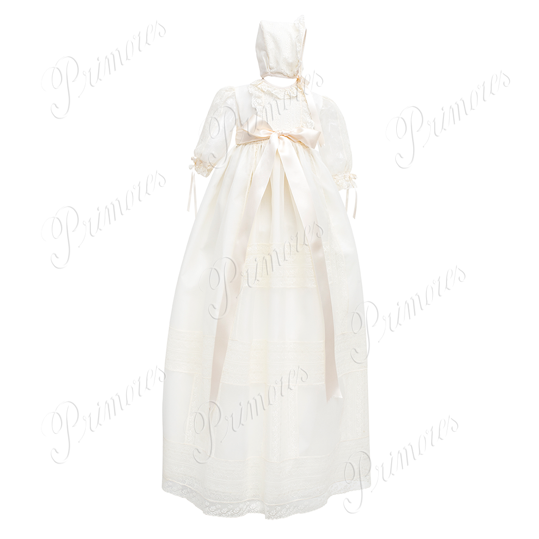 Ropón español elaborado en organza de seda y encajes valencienne