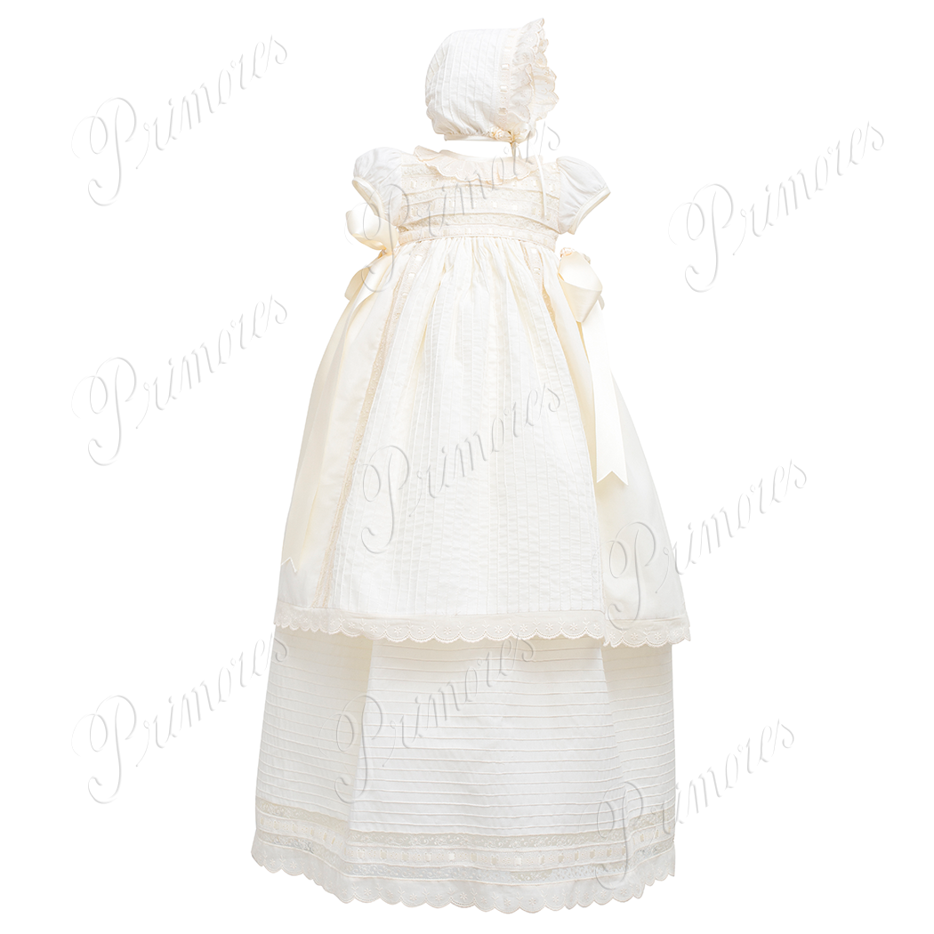 Ropón desmontable en organdí y tiras bordadas