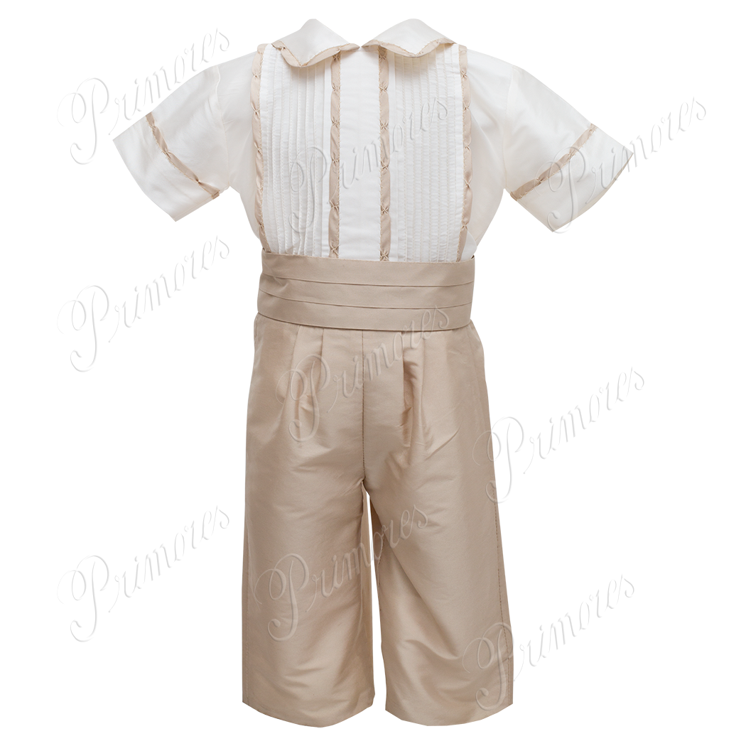 Trajecito de 3 piezas en imitación seda con alforzas y gaviados